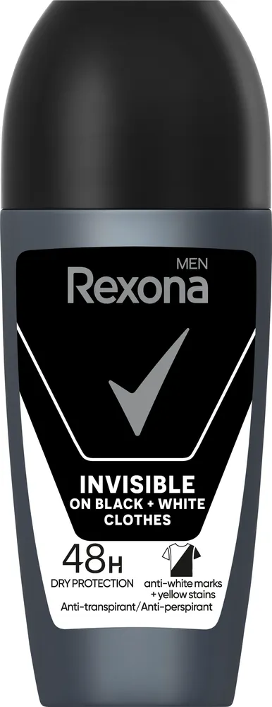Antiperspirant Deo Roll-on Invisible Black White tillverkas av Rexona Men.