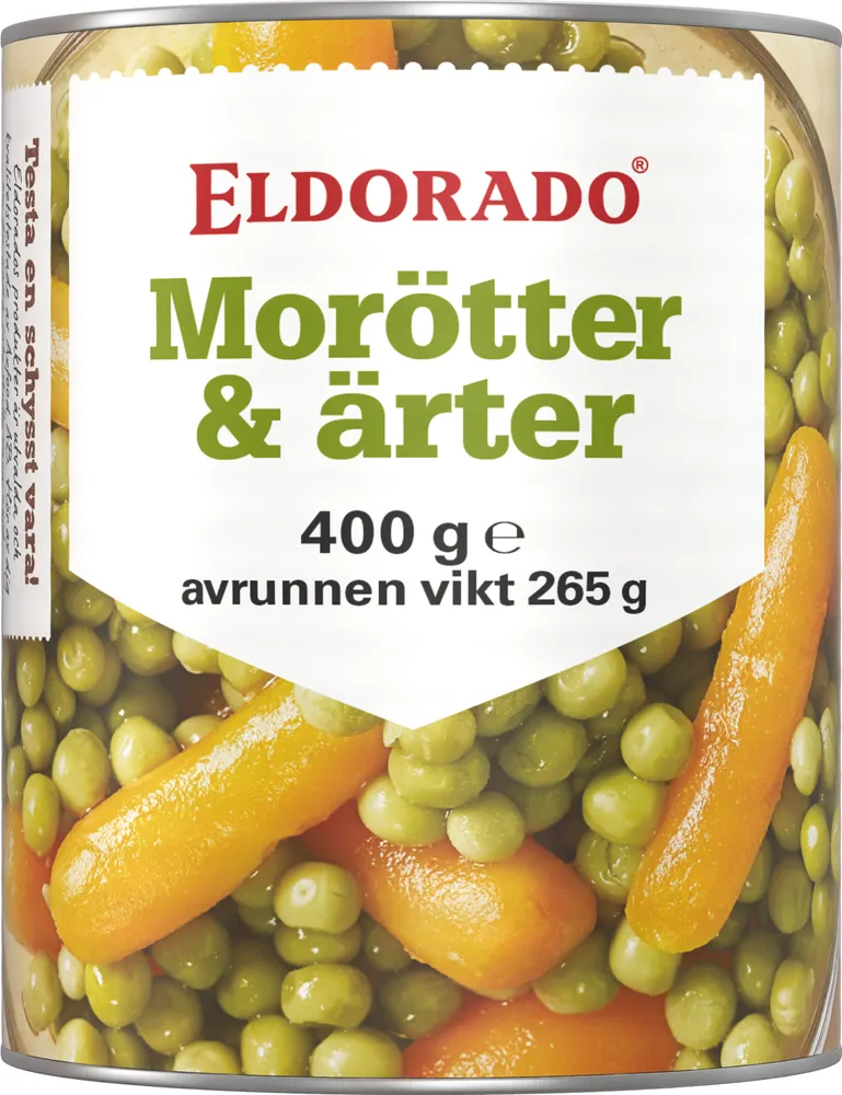 Ärter & Morötter Hela tillverkas av Eldorado.