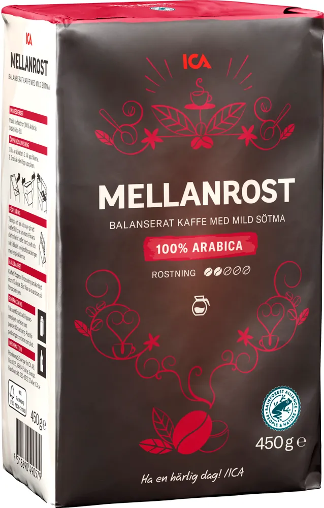 Bryggkaffe Mellanrost tillverkas av ICA.