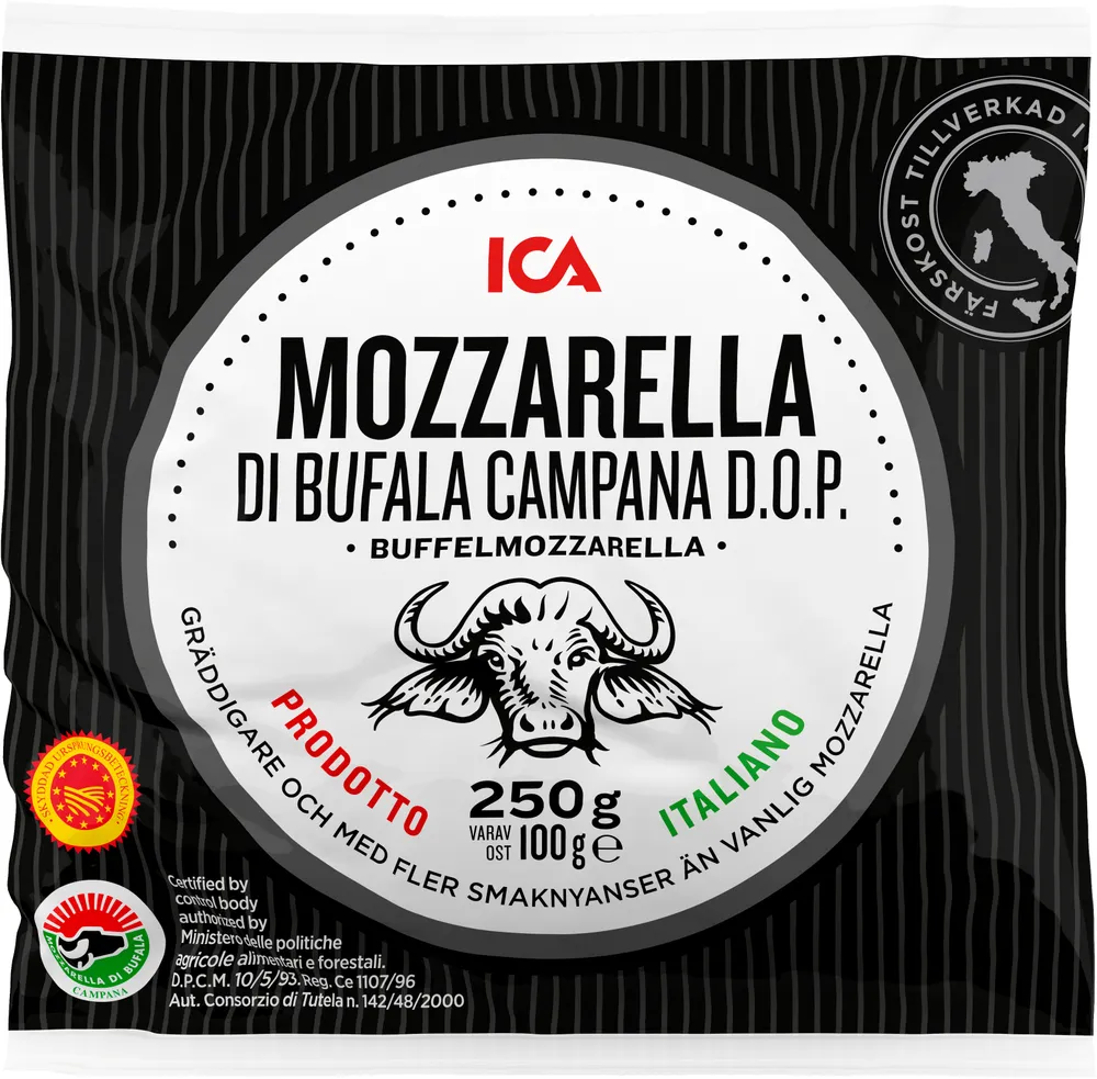 INGREDIENSER: Pastöriserad MJÖLK* från vattenbuffel, salt, mjölkkoagulerande enzym (animaliskt). *Ursprung Italien