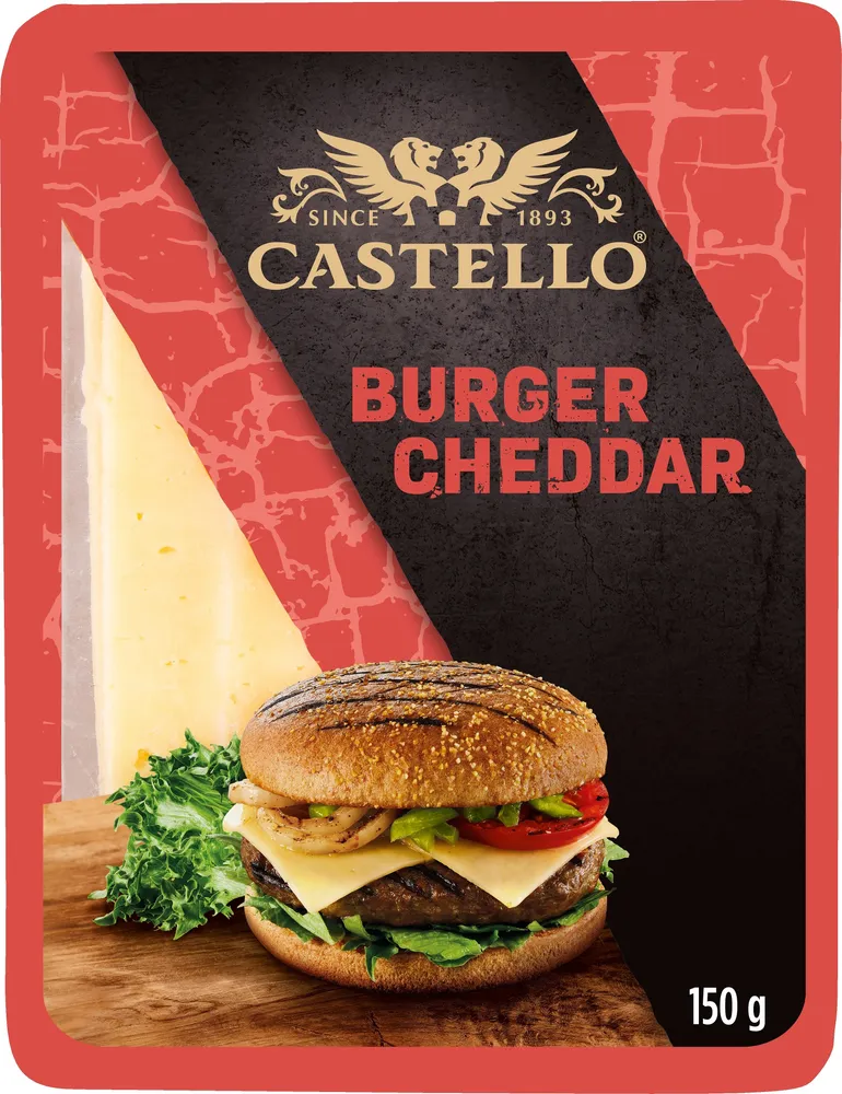 Burger Cheddar skivad hårdost tillverkas av Castello.