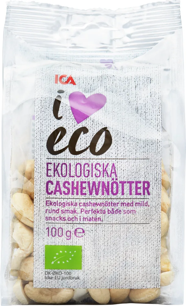 Cashewnötter Naturella tillverkas av ICA I Love Eco.