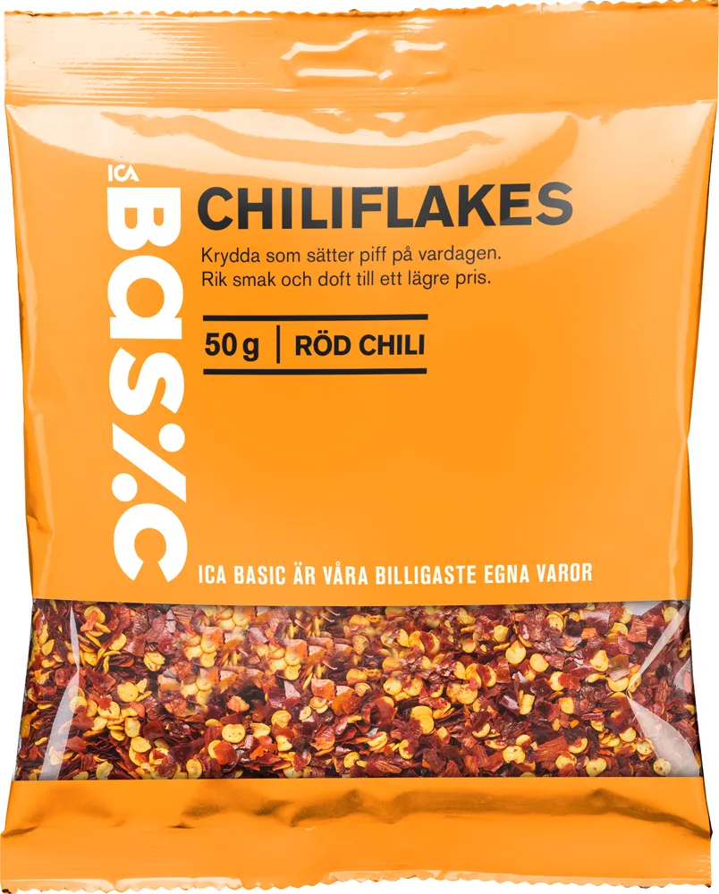 Chiliflakes tillverkas av ICA Basic.
