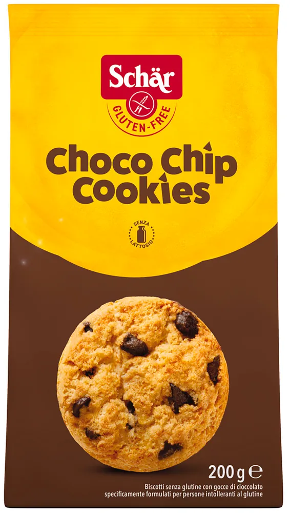 Schär Choco Chip Cookies är ett glutenfritt alternativ till amerikanska cookies. De spröda kakorna innehåller 12% mjölkchokladdroppar. Passar perfekt till fikat eller picknicken. Fri från gluten, vete och laktos. Utan tillsats av mjölk och konserveringsmedel. Kan användas inom FODMAP-låg kostbehandling.