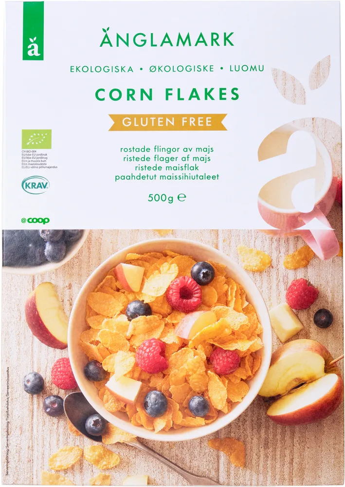 Cornflakes Glutenfri EKO tillverkas av Änglamark.