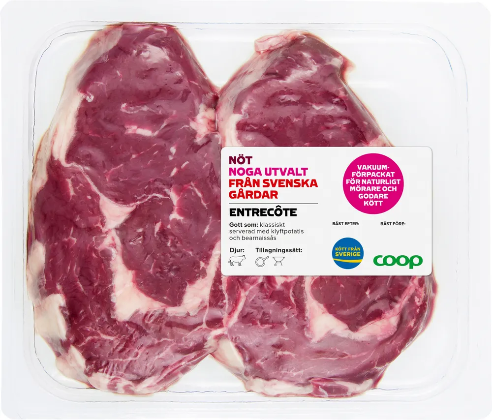 Entrecote 2 Skivor tillverkas av Coop.