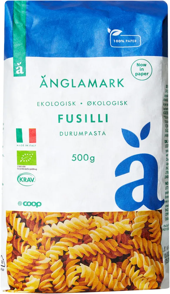 Fusilli EKO KRAV tillverkas av Änglamark.