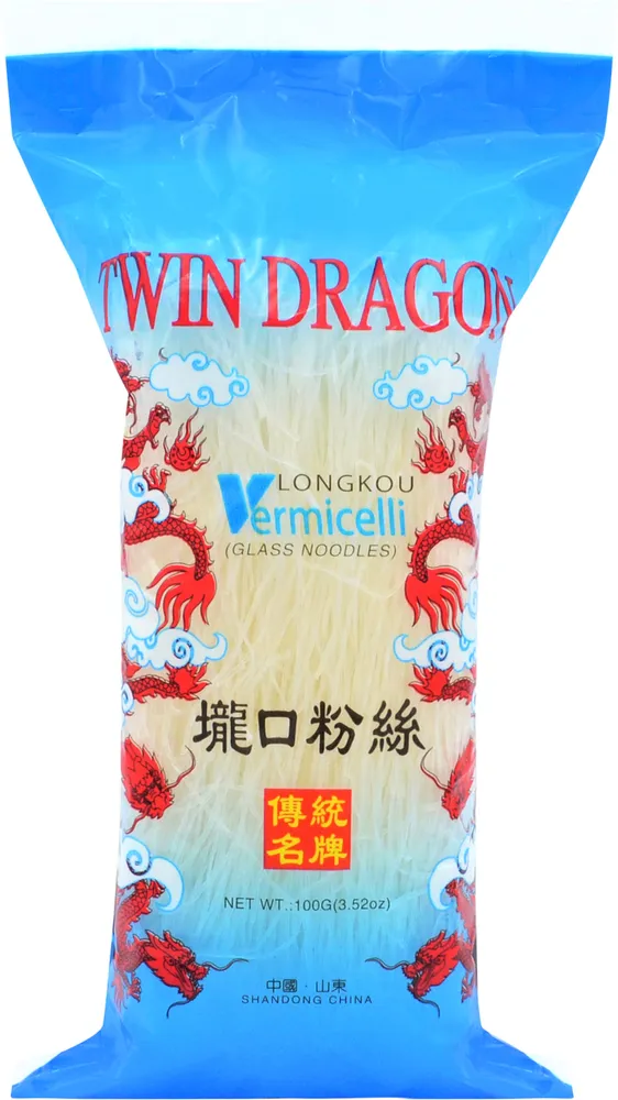Glasnudlar Longkou Vermicelli tillverkas av Twin Dragon.