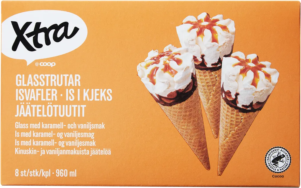 Glasstrutar Karamell & Vanilj 8-p tillverkas av Coop Xtra.