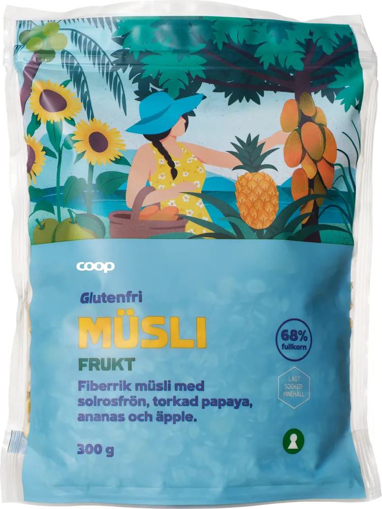 Glutenfri Müsli Frukt tillverkas av Coop.