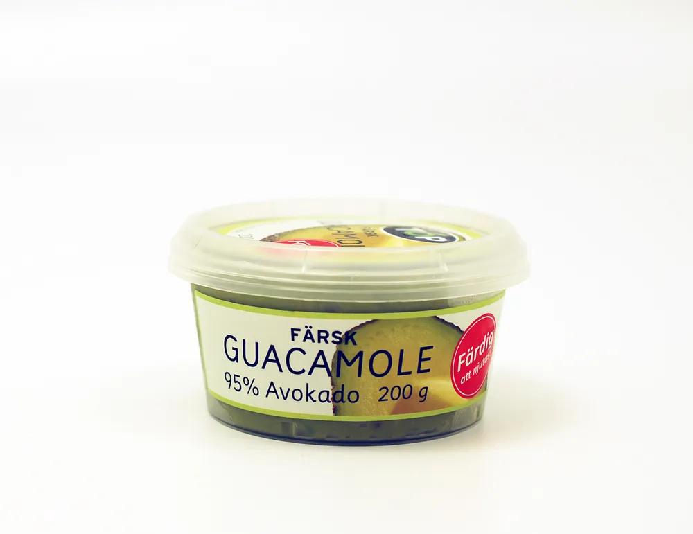 Ingredienser: Färsk avokado 95%, lök, vitlök, jalapeño, koriander, socker, salt, antioxidationsmedel (citronsyra, askorbinsyra, natriumaskorbat, natriumcitrat)