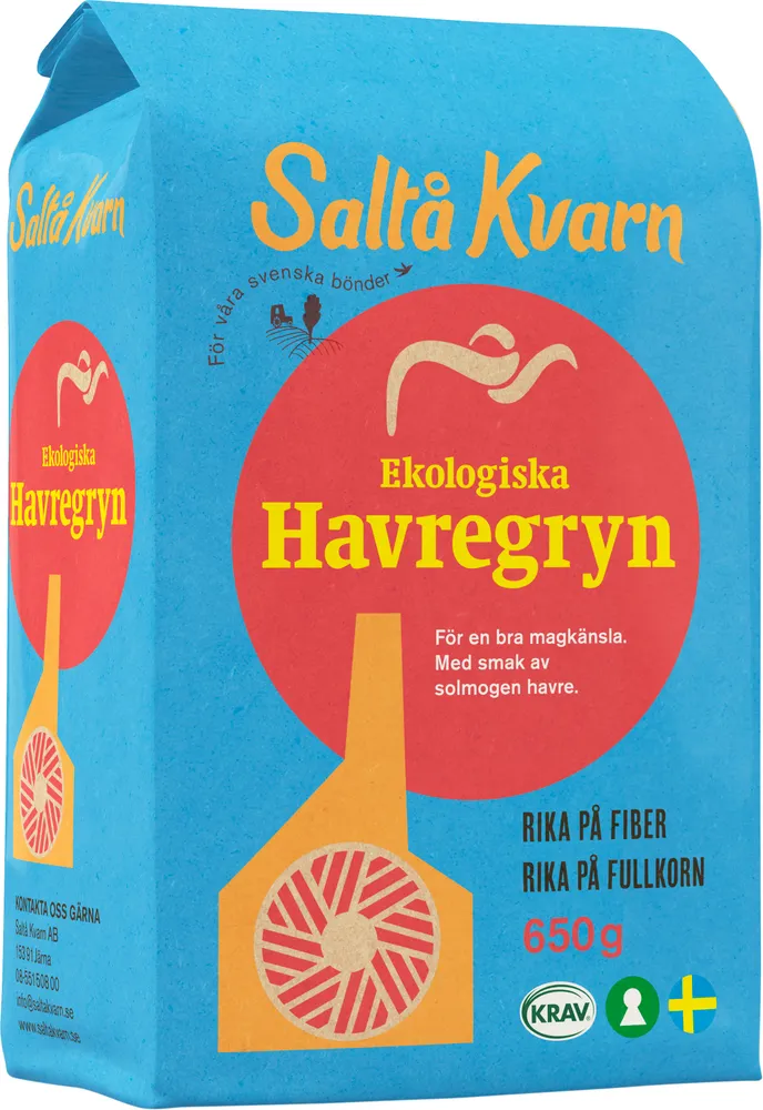 Havregryn EKO KRAV tillverkas av Saltå kvarn.