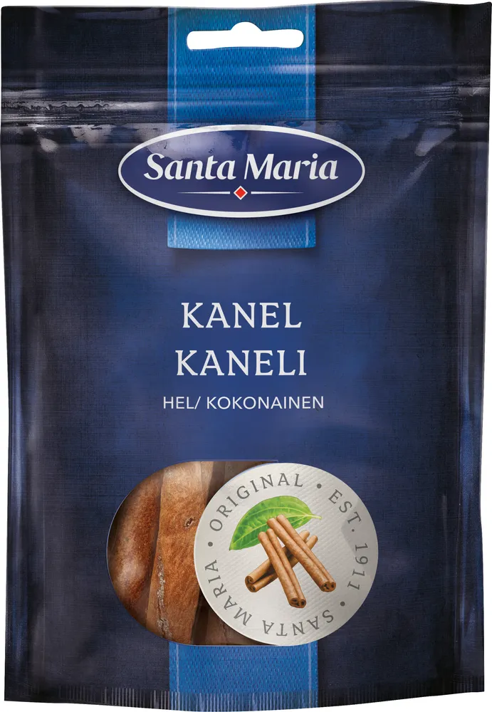 Hel kanel av hög kvalitet. Kanel har en ljuvligt komplex, sötaktig arom med angenämt skarpa toner. Santa Marias kanel är av sorten Cinnamonum Burmanii och kommer från Indonesien. Denna kanel passar lika bra i bakning som i matlagning. • Hel kanel förvaras torrt och mörkt för att bevara aromen längre