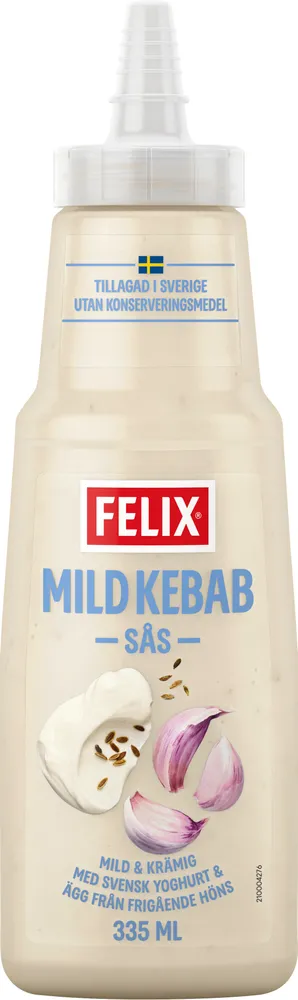 MILD KEBABSÅS Mild kebabsås, även kallad vit kebabsås. Med maxad krämighet och en rund, fräsch smak av svensk yoghurt och spiskummin. Ringla över din kebab, pizza eller taco och njut! Såsen tillagas i vår egen lilla såsfabrik i byn Fågelmara i Blekinge. Självklart utan konstgjorda aromer, färgämnen eller konserveringsmedel. Det är vi stolta över!