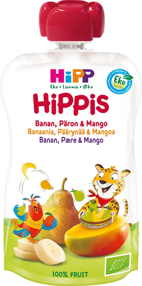 HiPPs ekologiska smoothie gjord på banan, päron och mango förpackad i en smidig klämpåse är tillverkad av de bästa ekologiska råvarorna. Klämmisen fungerar bra som smakportion när ditt barn ska introduceras till fast föda, senare kan den även användes som t.ex. dessert eller mellanmål. I HiPPs klämpåsar finns inget tillsatt socker. Klämpåsarna innehåller bara frukternas eget naturliga fruktsocker.För barn från 4 månader. Alla HiPPs klämmsar är klimatneutralt producerade. HiPPs sigill garanterar högsta ekologiska kvalitet och standard som överstiger lagkraven för ekologisk produktion. Här kan du läsa mer om hur HiPP är mer än ekologiskt: https://www.hippbarnmat.se/om-hipp/haallbarhet/