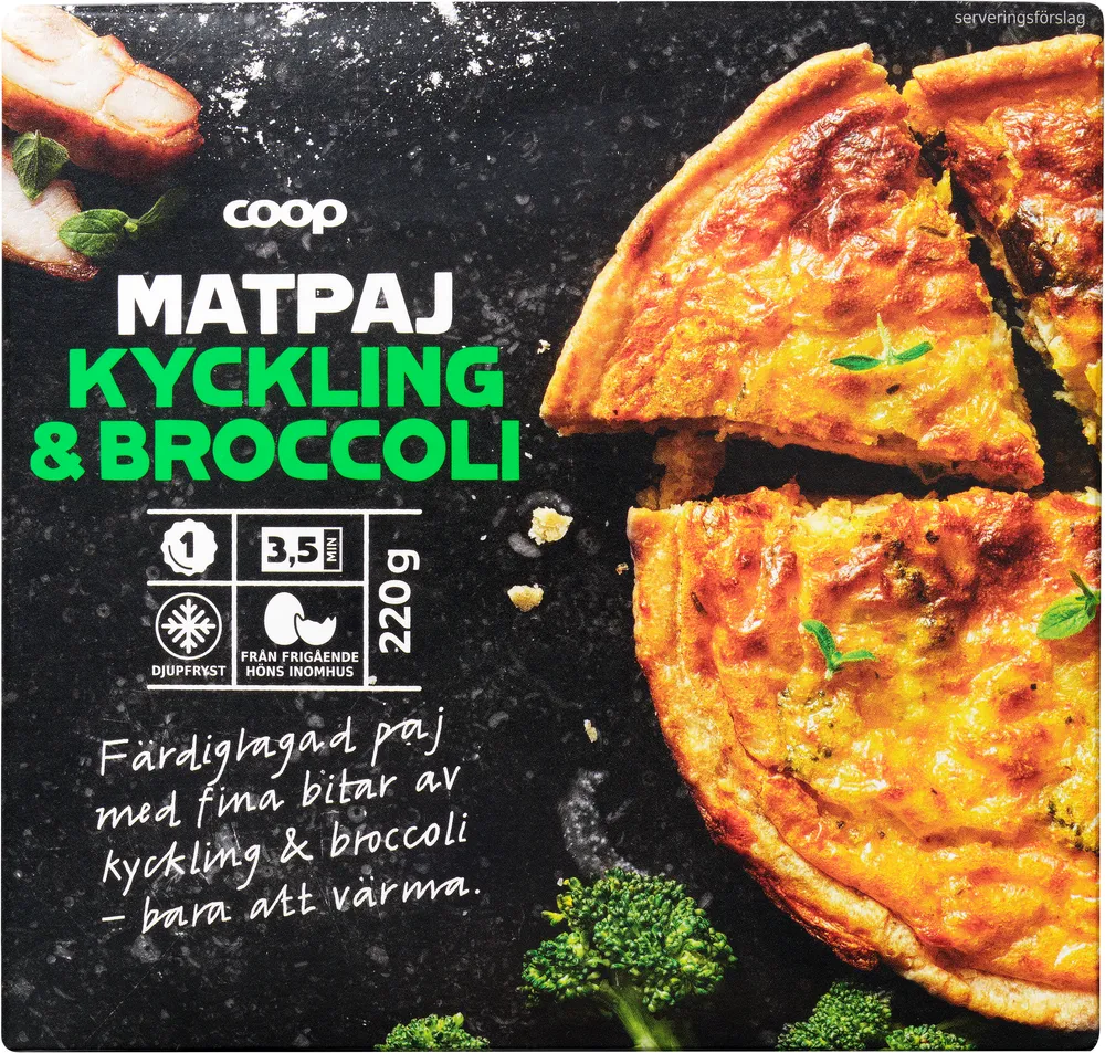 Kyckling- och broccolipaj tillverkas av Coop.
