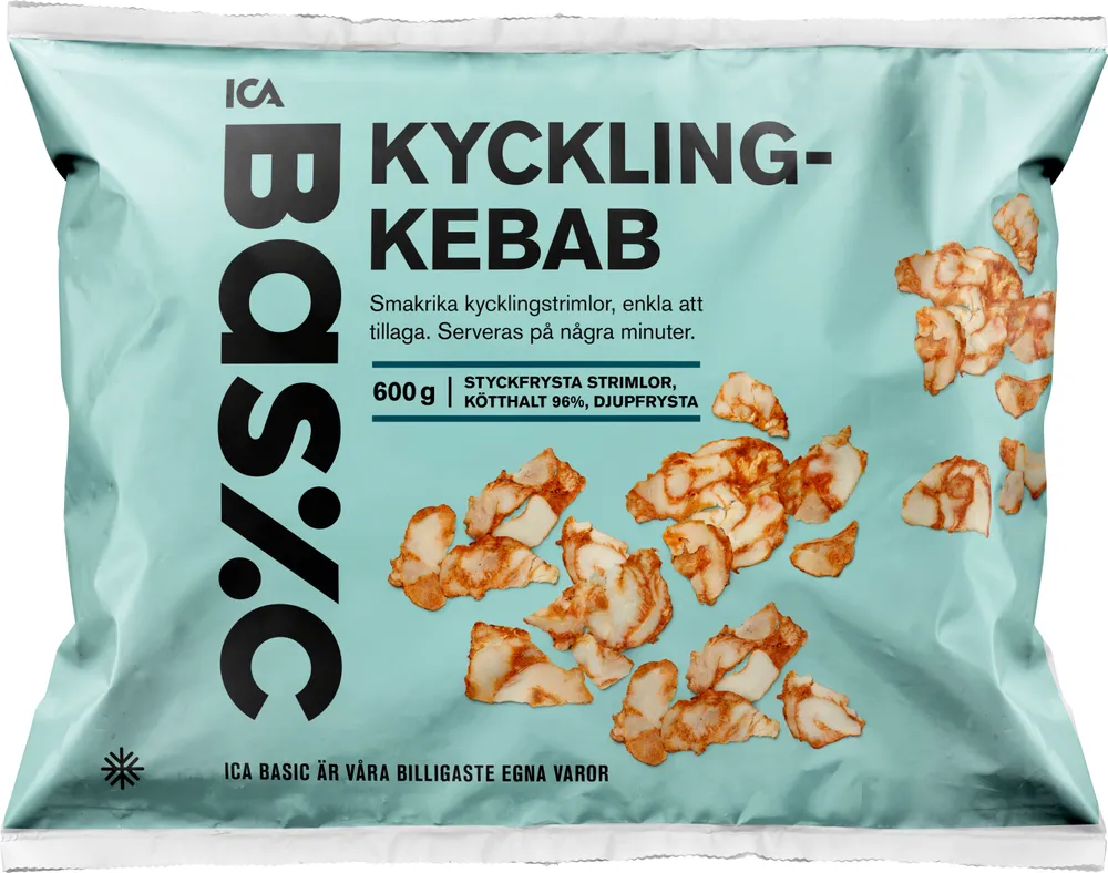 Kycklingkebab, fryst tillverkas av ICA Basic.