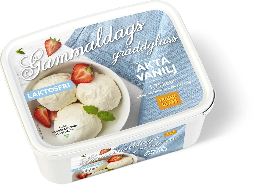 Laktosfri Gammaldags Gräddglass Äkta Vanilj tillverkas av Triumf glass.