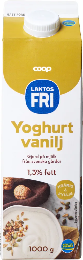 Laktosfri yoghurt vanilj tillverkas av Coop.