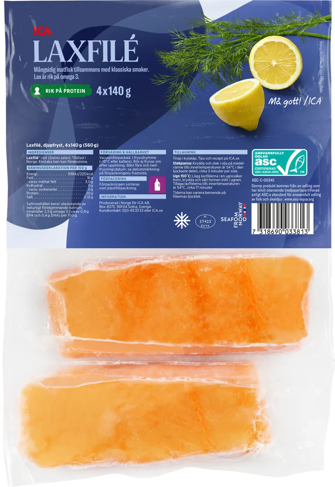 Laxfilé 4-p Fryst tillverkas av ICA.