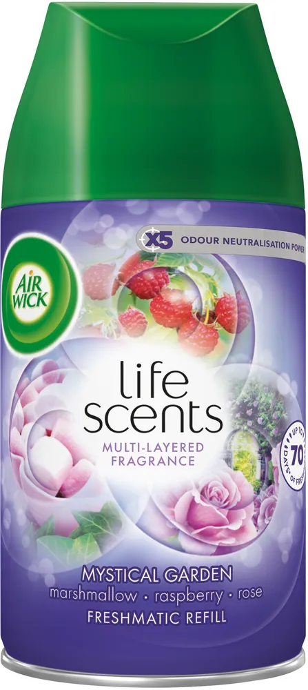 Välj mellan många olika Air Wick-refiller som kan sprida god stämning och fylla rummet med din favoritdoft i upp till 70 dagar. Passar till Airwick Freshmatic starterkit. - Doft av solmogna hallon, blommande rosor och marshmallows - Air Wick Freshmatic Automatic Spray är särskilt utformad för att ge ditt hem varaktig doft - Lättanvänd. Sätt bara i sprayrefillen så släpper den batteridrivna enheten ut en fräsch, lätt doft med jämna mellanrum efter tidsinställning. - Tar bort all oönskad lukt
