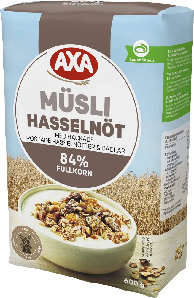 Müsli Hasselnöt Rostade Hasselnötter & Dadlar tillverkas av AXA.