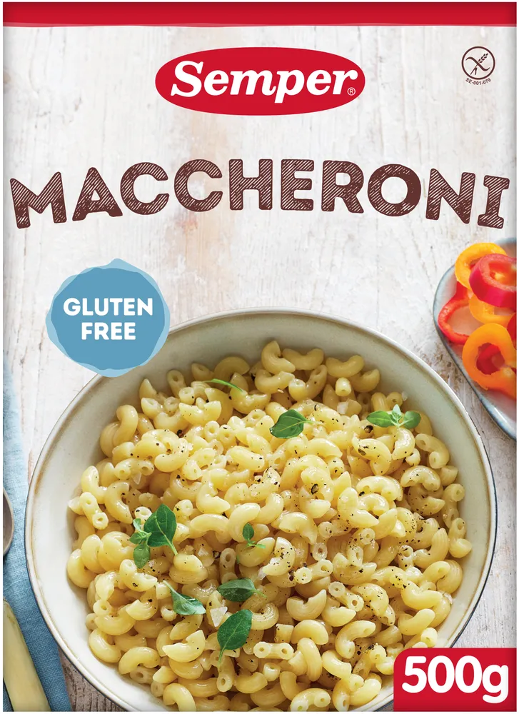 Maccheroni är Sempers glutenfria makaroner med fiber som tillverkats enligt italiensk tradition i Italiens hjärta: Toscana. Makaronerna passar lika bra med lite trillade köttbullar, som i en krämig Macaroni & Cheese! Sempers Maccheroni är veganska. Ta en titt i Sempers breda sortiment av glutenfri pasta så att du kan njuta av italiensk pasta med fin konsistens som uppfyller EU:s krav för glutenfri tillverkning.