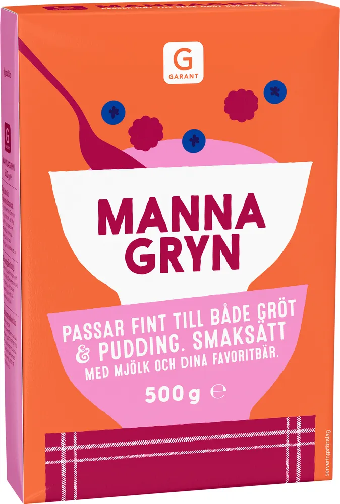 Mannagryn. Passar fint till både gröt och pudding. Smaksätt med mjölk och dina favoritbär. 500 gram.