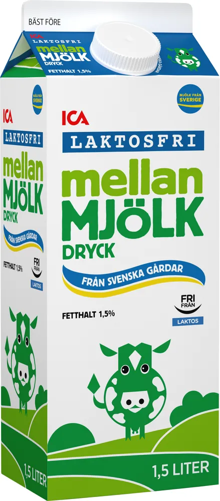 Mellanmjölkdryck 1,5% Laktosfri tillverkas av ICA.