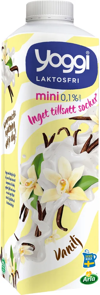 Yoggi mini laktosfri vanilj är för dig som vill njuta utan att kompromissa. En härlig yoghurt fylld med massor av smak. Inget tillsatt socker, låg fetthalt och dessutom laktosfri. Yoggi mini laktosfri finns i flera fräscha smaker. Symbolen med den blågula mjölkkannan garanterar 100 procent svensk mjölk.