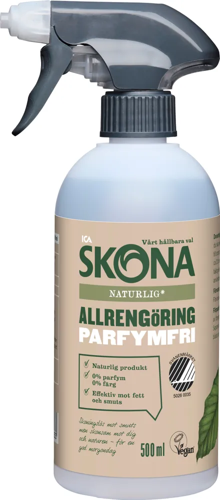 Naturlig allrengöring parfymfri tillverkas av Skona.