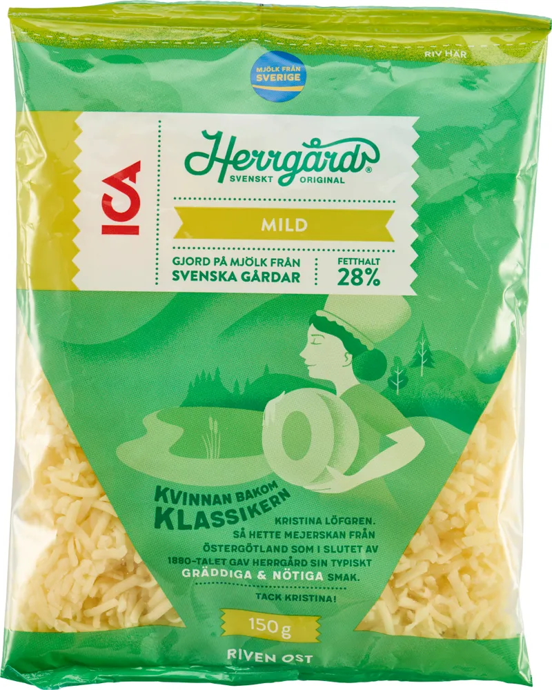 Ost Herrgård Mild Riven 28% tillverkas av ICA.