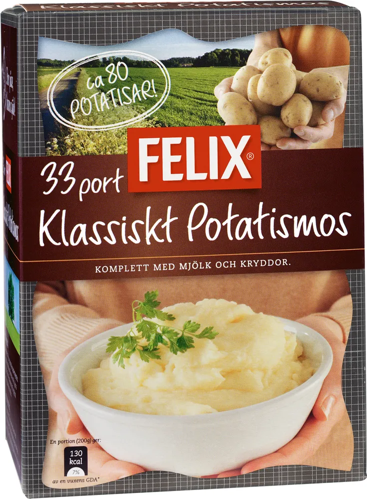 Potatismos 33-portioner tillverkas av Felix.
