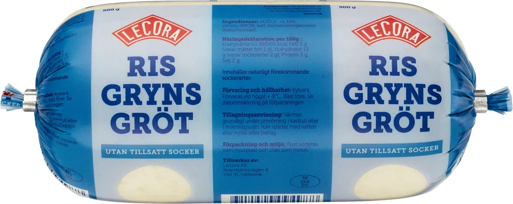 Risgrynsgröt Utan Tillsatt Socker tillverkas av Lecora.