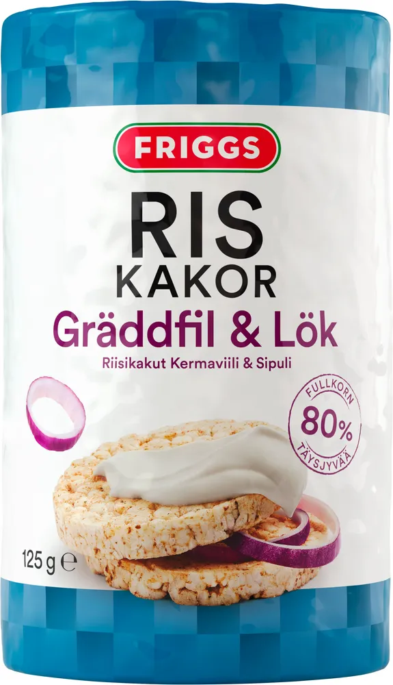 Riskakor Gräddfil & Lök tillverkas av Friggs.