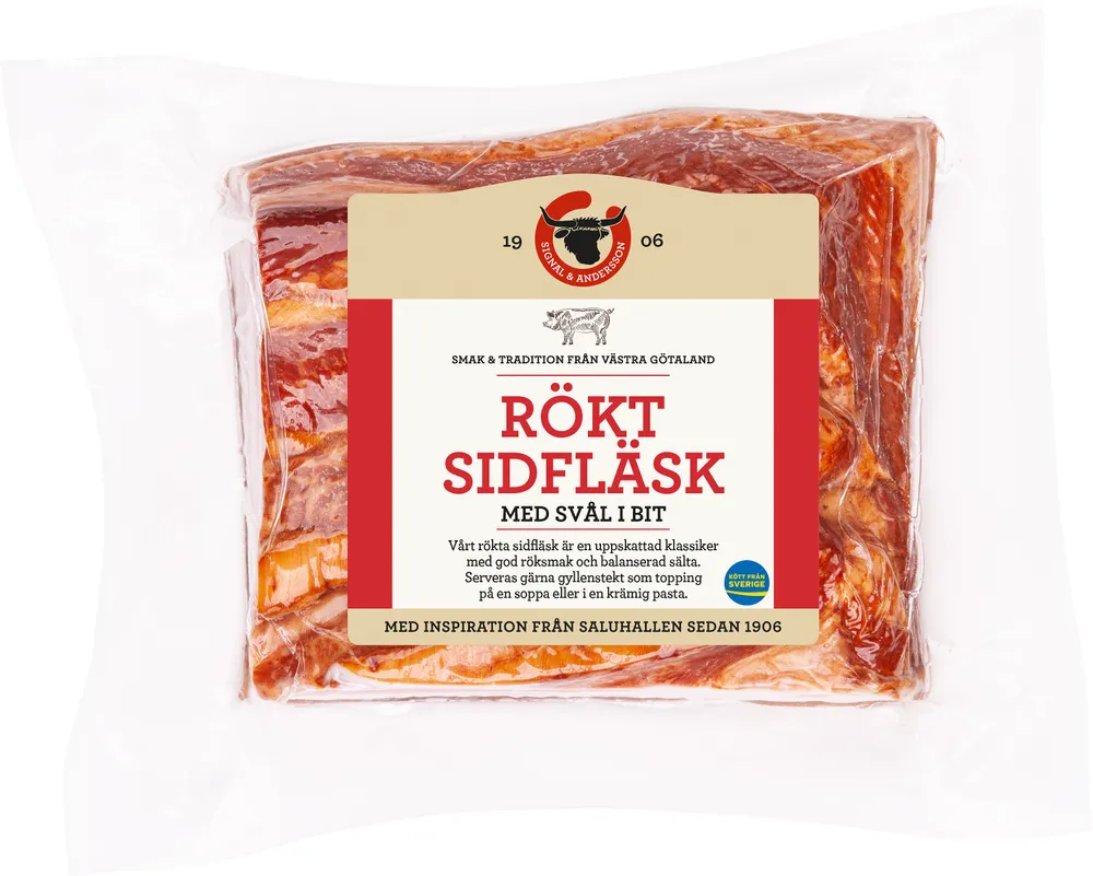 Sidfläsk rökt i bit m sv SE tillverkas av SIGNAL & ANDERSSON.