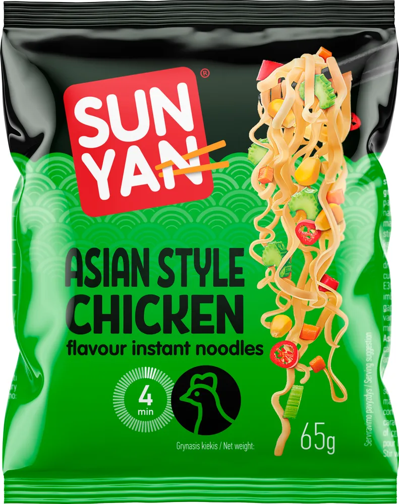 Snabbnudlar chicken flavour tillverkas av Sun Yan.