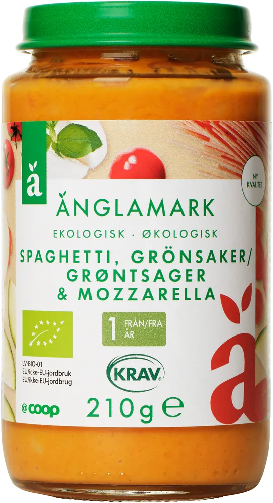 Spaghetti Grönsaker & Mozzarella 12 mån EKO tillverkas av Änglamark.
