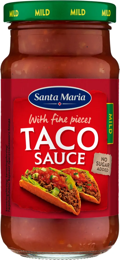 En klassisk tacosås med mild smak. En extra slät och milt aromatisk tacosås skapad för att göra alla som älskar tacos och Tex Mex glada. Santa Maria Taco Sauce mild är en tacosås som är perfekt att kombinera med tacos, burritos, quesadillas eller nachos. • Utan tillsatt socker • Finns även i mindre förpackningar samt i Medium, Hot och X-hot • En tidlös tacosås till tacokväll, barnkalas och fredagsmys • Lämplig även till vegansk och vegetarisk bjudmat