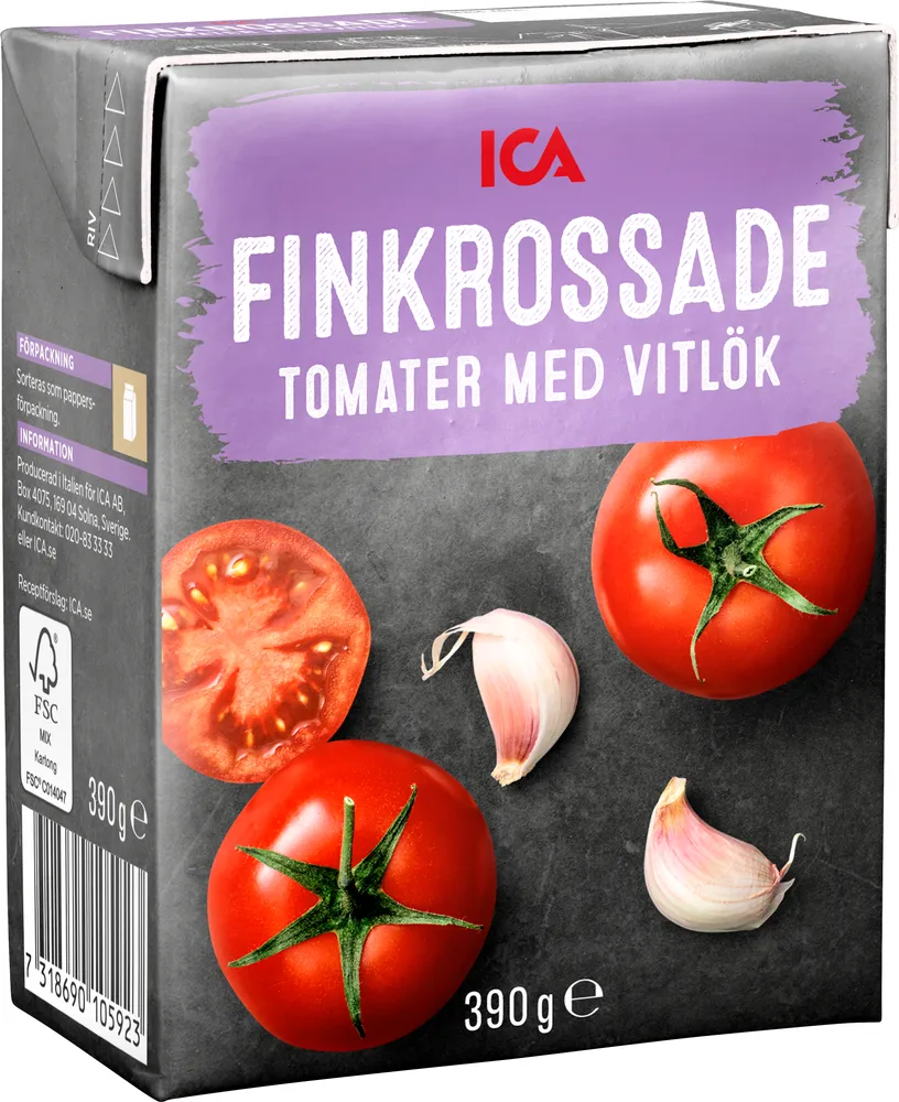 Tomater Finkrossade Vitlök tillverkas av ICA.