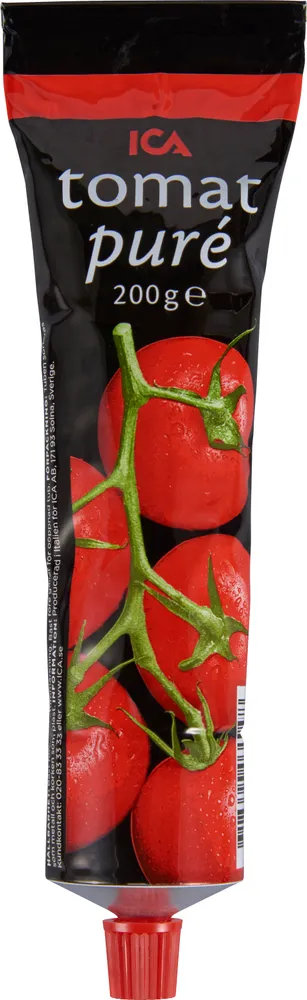 Tomatpuré. Brixhalt > 28%. Tomater odlade i USA.