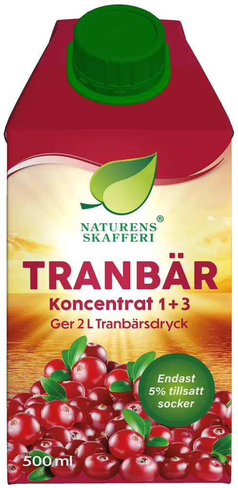 Tranbär koncentrat 1+3 tillverkas av Naturens Skafferi.