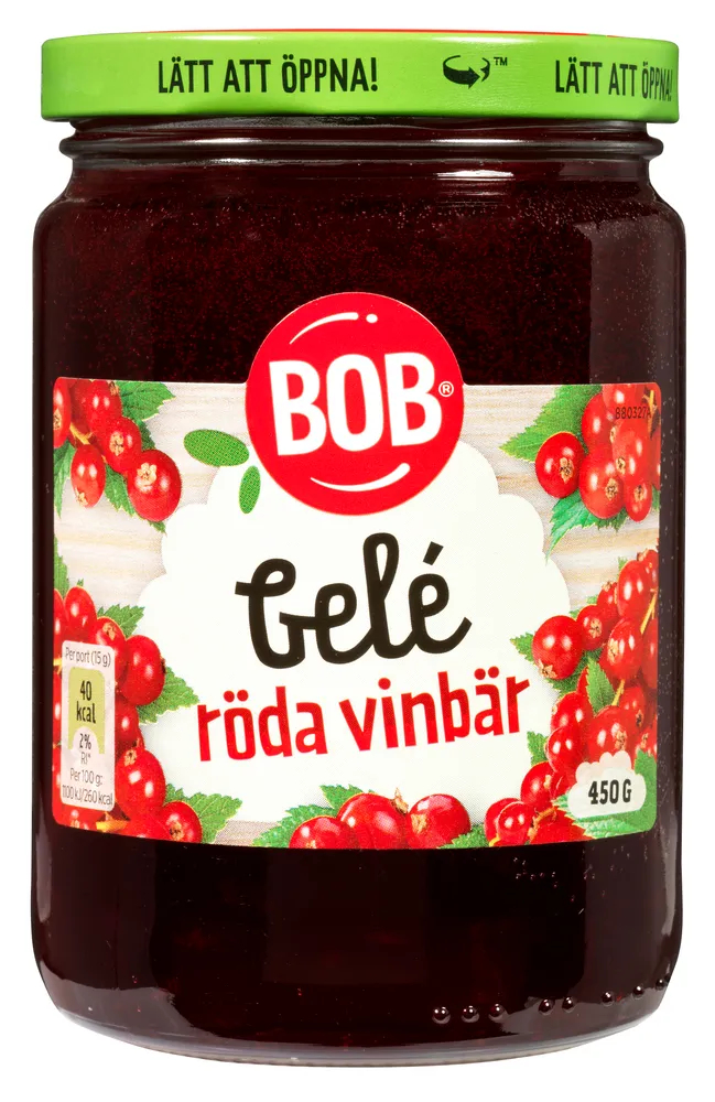 BOB vinbärsgelé med röda vinbär. BOB Gelé är av hög kvalitet och gjord på utvalda bär. Rödavinbärsgelén produceras i hjärtat av Skåne i lilla Tollarp av de bästa råvarorna. OB Lingonsylt i en klimatsmart refillförpackning. Besök BOB.se för mer inspiration och massor av recept.