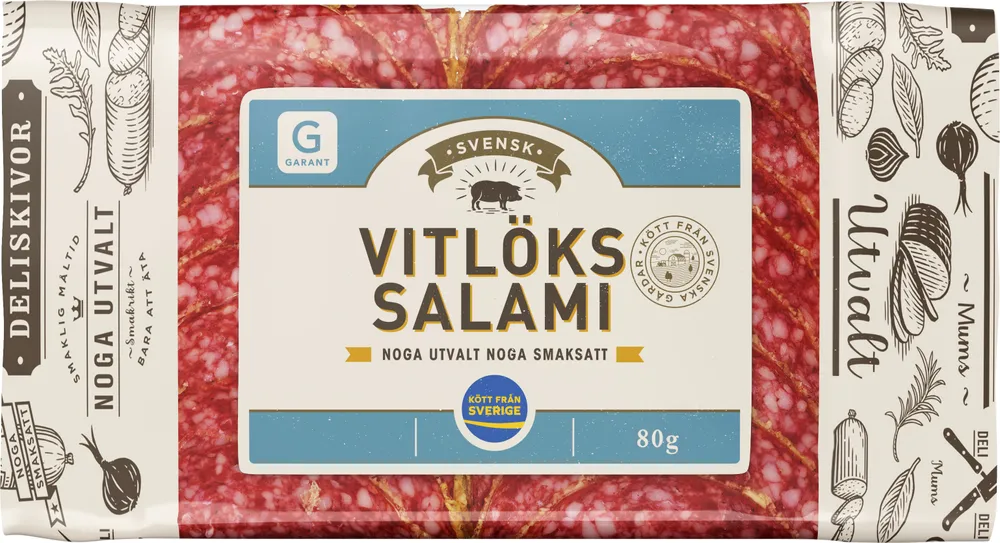 Vitlökssalami tillverkas av Garant.