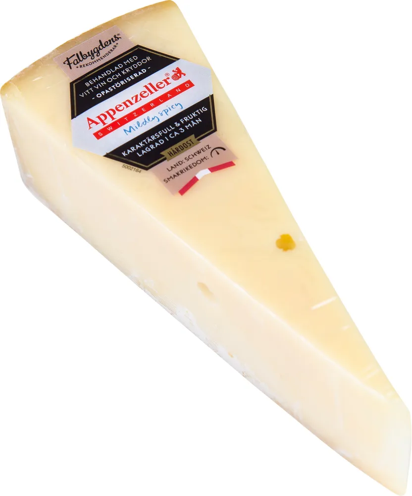 Njut av Falbygdens® Rekommenderar Appenzeller opast – en god opastöriserad ost till ostbrickan. Appenzeller är en av de äldsta ostsorterna från Schweiz, med anor från medeltiden. Den tillverkas framförallt i Appenzell-regionen i nordöstra Schweiz. Fram till början av 1900-talet gjordes osten för hand av bergsherdarna och de största konsumenterna på den tiden var munkarna. Appenzeller liknar Emmentaler och Gruyère, men har en lite kraftigare och fruktigare smak som får sin speciella karaktär av att den våtbehandlas med en blandning av vitt vin och olika kryddor under lagringen. Prova att servera en bit Appenzeller tillsammans med körsbärsmarmelad på en lyxig ostbricka.