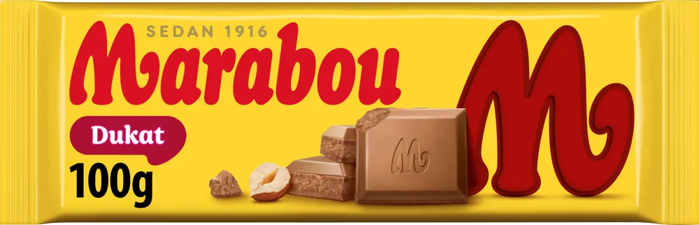 Marabou Dukat är en Marabou Mjölkchokladkaka fylld med en mjuk och härlig hasselnötsnougat som passar för alla tillfällen. Genom Cocoa Life, vårt program för en hållbar kakaoproduktion, bidrar Marabou till att kakao odlas på rätt sätt, för att skydda planeten och respektera mänskliga rättigheter i vår värdekedja. Läs mer om Cocoa Life här www.cocoalife.org.