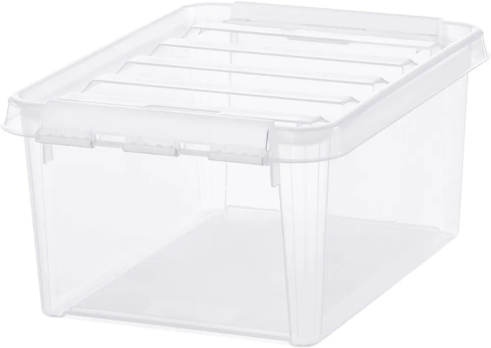 SmartStore Classic är en serie förvaringslådor av premiumkvalitet, med ett brett utbud av storlekar för att passa olika behov. SmartStore Classic är vår mest populära förvaringsserie och har sedan 1995 stått för säker och hållbar förvaring. Den här lådan rymmer 8 liter och är perfekt för att förvara kontorsmaterial, leksaker och städprodukter. Det transparenta materialet gör det lätt att se vad varje låda innehåller. Rejäla clips av återvunnen plast håller locket på plats. Lådorna kan staplas på varandra med lock, och i varandra utan lock. Classic 8 L kan staplas med Classic 13 L. Tillverkad i Sverige, av hållbar livsmedelsgodkänd plast. 10 års garanti.
