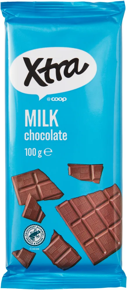 Mjölkchoklad. tillverkas av Coop Xtra.