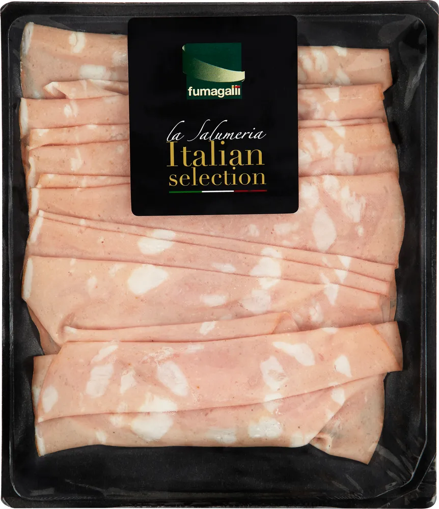 Mortadella tillverkas av Fumagalli.