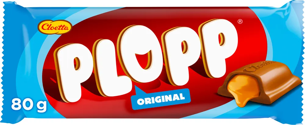 Plopp Original från Cloetta har en söt och ljuv toffeefyllning och ett täcke av mjölkchoklad. Unna dig själv eller någon du tycker om denna goda choklad fylld med härlig kolasmak. Passar perfekt för dig som älskar mjölkchoklad med krämig toffefyllning. Förpackningen innehåller 80 g.